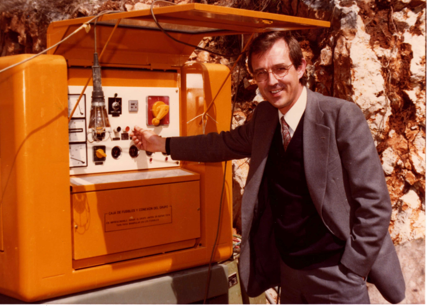 24 de marzo de 1979: Rafael Ferrer pulsando el botón que ponía en marcha la extracción de agua del pozo Beniardà I. (Fotografía cedida por Rafael Ferrer)