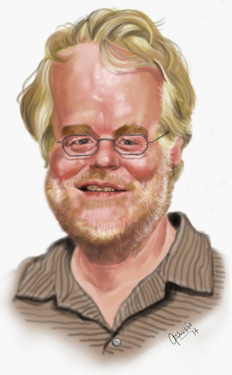 A Philip Seymour-Hoffman lo quiero recordar como esta caricatura, como un tío alegre con ganas de vivir, que tenía infinidad de proyectos todavía pendientes de hacer; era el gran emprendedor del cine, no había proyecto en el que él no estuviera metido. Se había metido en el Cine Independiente y era uno de sus grandes salvadores y promotores, un valor y baluarte incalculable. Que te de una oportunidad de debutar o llevar a cabo tus proyectos Philip Seymour-Hoffman es muy grande. El Cine necesita de tipos como éstos para hacerlo más grande de lo que és, el Séptimo Arte, una Industria que mueve miles de millones de dólares, que en España está en saco roto y controlado por unos jerifaltes que no tienen ni puta idea de lo que es cine.