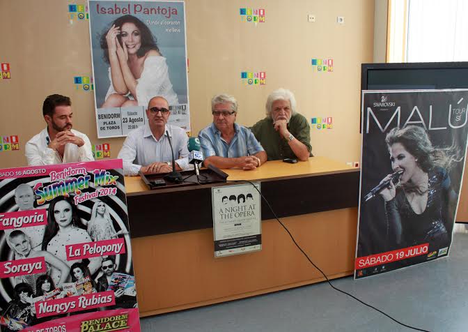 Benidorm se convierte este verano en el epicentro de las actuaciones musicales. Durante los meses de julio y agosto la capital turística del Mediterráneo acoge un amplio y variado programa de conciertos, gracias a la apuesta decidida que han realizado las empresas privadas por la ciudad. Esta mañana, el concejal de Eventos y Festivales, Conrado Hernández, ha presentado la programación musical del verano junto con los representantes del Benidorm Palace, Vicente Climent y Juan Antonio Leiro, y César Álvarez, director artístico de la productora Goldberg.