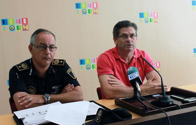 El concejal de Seguridad Ciudadana del Ayuntamiento de Benidorm, Pepe Marcet, y el intendente jefe de la Policía Local, Juan Fuertes, han realizado esta mañana un balance del primer mes de servicio de los diez agentes interinos que se incorporaron a la sección de Playas. El edil del área ha indicado que “se ha realizado un gran trabajo”, y por este motivo los servicios “han aumentado un 40% respecto al año pasado”. Marcet se ha mostrado “orgulloso y contento” por la incorporación de estos agentes que “han completado la sección de Playas y están realizando un trabajo muy bueno como lo constata las numerosas felicitaciones que estamos recibiendo”.