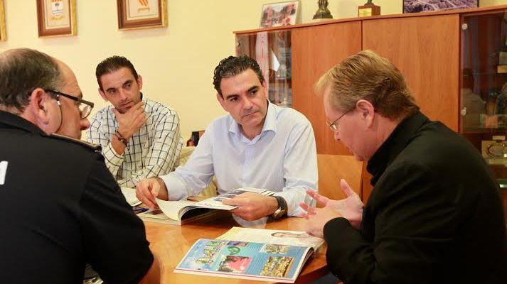El alcalde, Vicente Arques, el concejal de Fiestas, Juan Carlos Casiano, el jefe de la Policía Local, Joaquín Ortiz, y el párroco local, Miguel Ángel Schiller, han mantenido hoy una reunión para ultimar el dispositivo que velará por la seguridad durante los actos religiosos, especialmente la ofrenda y las procesiones.