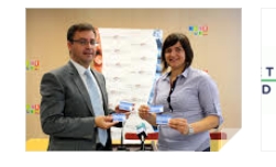 La Concejalía de Juventud y el servicio público de transporte urbano, Llorente Bus, han puesto en funcionamiento la nueva ‘TarjetAzul’ que ofrece a los jóvenes menores de 31 años, y empadronados en Benidorm, descuentos del 30 % en el precio del billete durante el primer año. La edil del área, Mª Carmen Martínez, y el representante de Llorente Bus, Luis González han presentado hoy esta iniciativa.