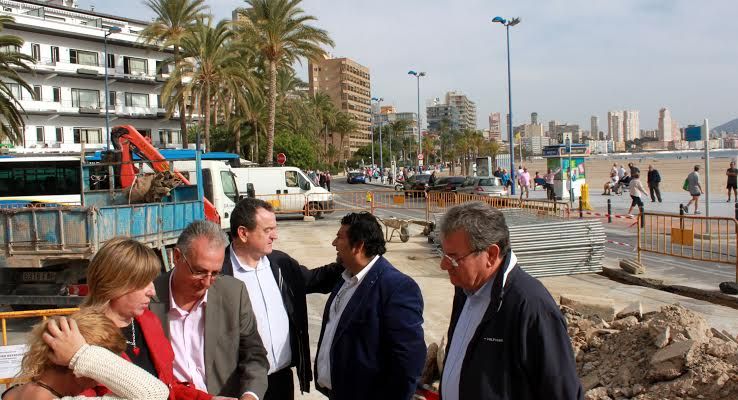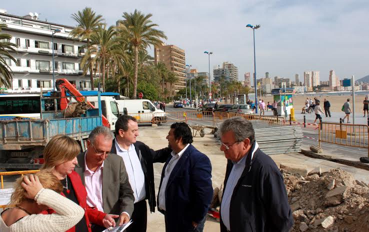 La Concejalía de Escena Urbana ha iniciado las obras de mejora en la accesibilidad y la seguridad vial de la avenida de Motbenidorm de La Cala, en el tramo comprendido entre la avenida Vicente Llorca Alós y calle de Gijón, que conllevarán la ampliación de los espacios destinados para el peatón y el disfrute del paseo, así como una mejora en la imagen del frente litoral de La Cala. Esta mañana, en el marco de la campaña de barrios ‘Más cerca, mes prop’ que este viernes se ha situado precisamente en el barrio de La Cala, el alcalde, Agustín Navarro, y la concejala de Escena Urbana, Gema Amor, junto a otros ediles del equipo de gobierno como Miguel Llorca y Juan Ramón Martínez han visitado los trabajos.