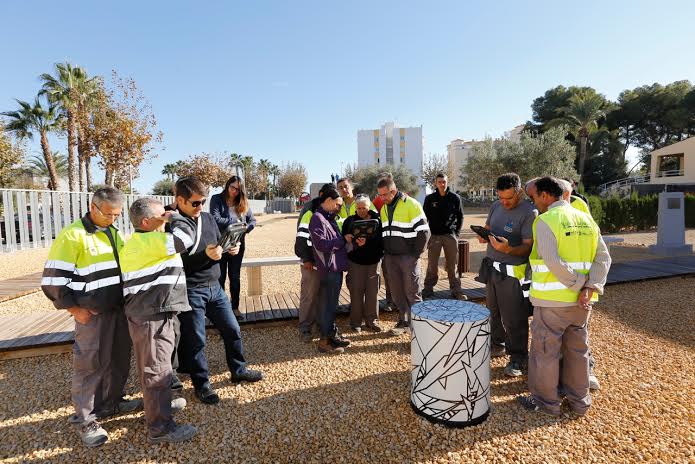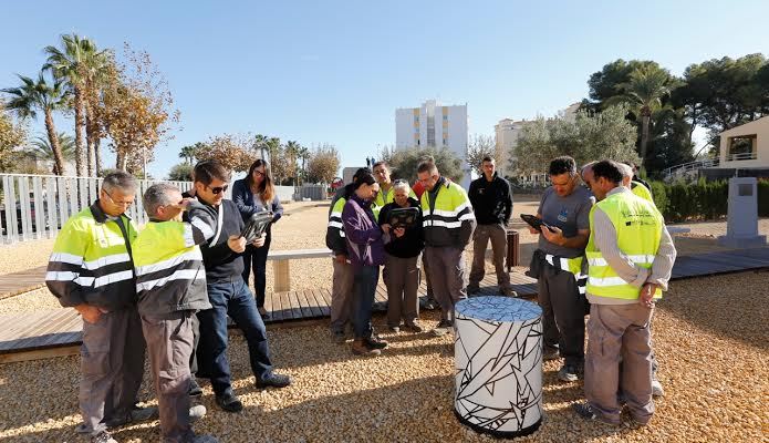 Los alumnos de los talleres de empleo de Patrimonio Histórico-Cultural y de Jardinería han visitado hoy el Museo al Aire Libre Villa Romana de l’Albir y han podido conocer la nueva guía interactiva de realidad aumentada. El Ayuntamiento de L’Alfàs del Pi ha iniciado una ronda de visitas con colectivos y asociaciones del municipio para dar a conocer esta novedosa aplicación para iPad que permite la visualización virtual 3D del conjunto de las termas sobre el propio yacimiento. Los alumnos están a punto de finalizar su formación. Durante un año han podido aprender, además de su especialidad, una serie de conocimientos básicos, desde cultura a informática, riesgos laborales o técnicas para la búsqueda de empleo. Son talleres subvencionados con fondos europeos, un programa de formación que busca ofrecer una salida laboral digna a personas en situación de desempleo.