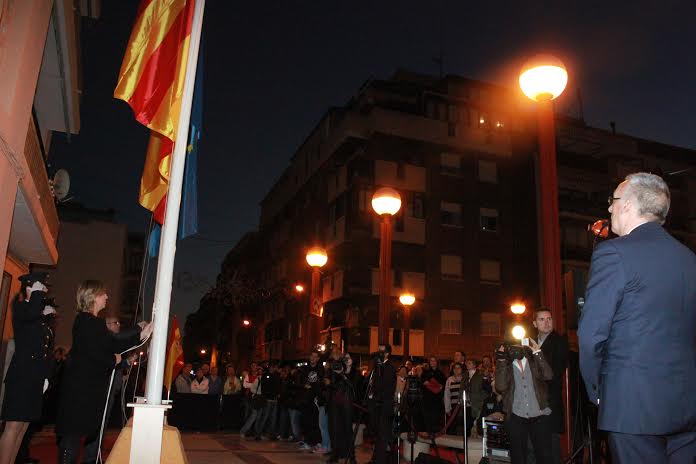 El acto se ha celebrado en la plaza Neptuno, y ha empezado con la izada de las banderas, en presencia de toda la corporación y una amplia representación de entidades festeras y sociales. Para finalizar se han interpretado los himnos oficiales.
