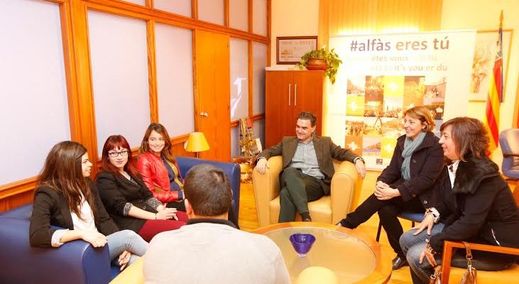 El alcalde de l’Alfàs del Pi, Vicente Arques, ha recibido en su despacho a los cuatro alumnos del IES L’Arabí que obtuvieron la Mención Honorífica de Bachiller en el pasado curso escolar 2013-2014. Son Juan Antonio López, Raquel Caleya, Saray Rubio y Gemma Luque, que finalizaron sus estudios en el instituto de l’Alfàs con Matrícula de Honor, mención que les ha permitido disfrutar durante el primer año de universidad de la exención total del pago de tasas por matrícula. Además, el Ayuntamiento de l’Alfàs del Pi, a través de la concejalía de Educación, que dirige Isabel Muñoz, valora el esfuerzo y la dedicación de los alumnos que han recibido la Mención Honorífica de Bachiller, concediéndoles un premio dotado de 750 euros para gastos universitarios. El primer edil ha querido felicitar a los jóvenes por su brillante trayectoria y les ha animado a seguir por el camino de la excelencia durante su etapa universitaria.