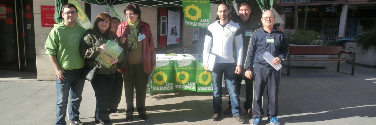 En la calle Tomas Ortuño, frente a las oficinas del Banco de Santander, la agrupación local de “LOS VERDES”, montaron un toldo, con mesa y propaganda, junto con la presencia de varios de sus más destacados miembros, parta informas a las personas que pasaban y se interesaban por sus ofertas políticas.