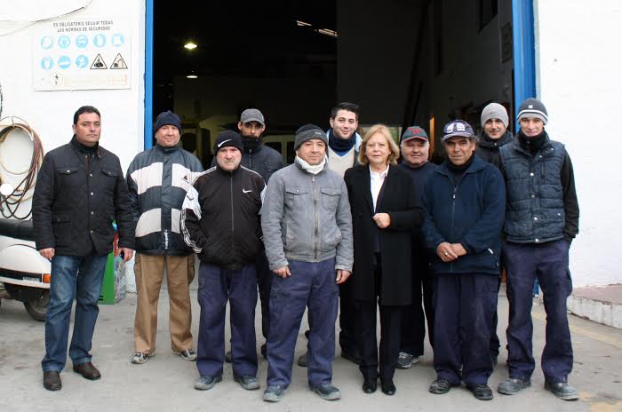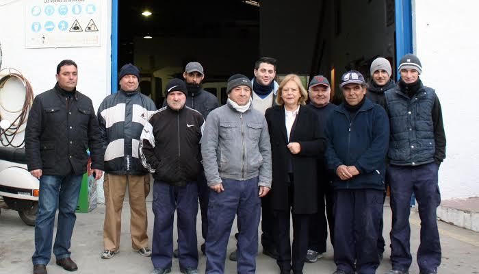 La concejal de Empleo de Ayuntamiento de Benidorm, Ángeles Valdivieso, ha visitado esta mañana las instalaciones del almacén municipal para conocer los trabajos que están llevando a cabo los 9 peones de construcción que han sido contratados gracias al Plan de Empleo Conjunto.