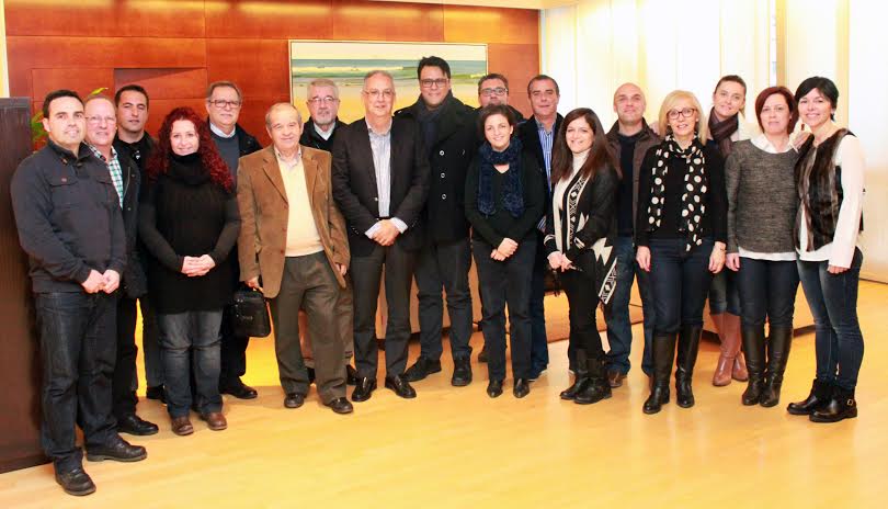 El alcalde de Benidorm, Agustín Navarro, y la edil de Fiestas, Cristina Escoda, han recibido esta tarde en el despacho de Alcaldía al presidente de la Comisión de Fiestas Mayores Patronales y a la presidenta de la Asociación de Peñas, Juan Muñoz y Mamen Mayor respectivamente, y a sus juntas directivas. Durante el encuentro, tanto el primer edil como la concejal de Fiestas han brindado toda la ayuda y colaboración posible del Ayuntamiento a estos colectivos de cara a la celebración de las fiestas mayores patronales de este 2015 en el que se conmemora el 275 Aniversario del Hallazgo de la Virgen del Sufragio.