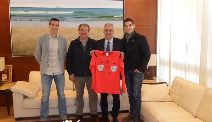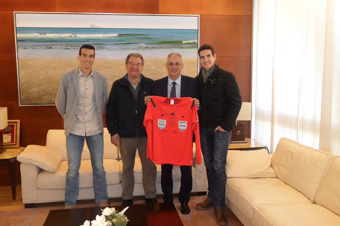 Ambos han entregado a la primera autoridad local una camiseta de árbitro internacional dedicada, mientras que el alcalde les ha regalado unas camisetas de entrenamiento con el logotipo de Benidorm. Tras interesarse por sus próximos compromisos, el alcalde y el concejal han deseado suerte a ambos en su difícil labor en el mundo del arbitraje.