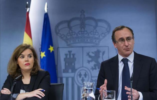 Agencia EFE – El ministro de Sanidad, Servicios Sociales e Igualdad, Alfonso Alonso, junto a la vicepresidenta del Gobierno, Soraya Sáenz de Santamaría, durante la rueda de prensa posterior a la reunión del …más