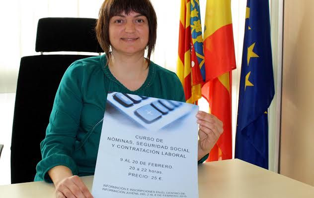 La Concejalía de Juventud, que dirige Mª Carmen Martínez, ha organizado un curso sobre nóminas, Seguridad Social y contratación laboral que se desarrollará del 9 al 20 de febrero, de lunes a viernes, de 20.00 a 22.00 horas. El precio de la matrícula es de 25 euros.