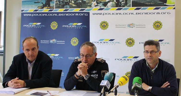El concejal de Seguridad Ciudadana, Pepe Marcet, y el jefe de la Policía Local, Juan Fuertes, han presentado hoy la memoria de actuaciones de 2014 de la Policía Local de Benidorm, destacando el incremento en un 30% de las inspecciones a establecimientos con 943.