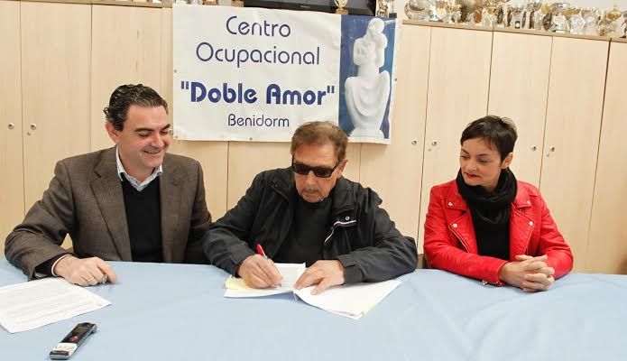 El alcalde de l’Alfàs del Pi, Vicente Arques, y el presidente de la Asociación Doble Amor, Casimiro Vila, han renovado hoy el convenio de colaboración anual que el consistorio alfasino y el centro ocupacional mantienen desde hace años. Son 14.000 euros los que aporta la concejalía de Bienestar Social de l’Alfàs al Centro Doble Amor, asociación que se dedica desde hace más de 40 años al cuidado y formación de personas con discapacidad intelectual de toda la comarca de la Marina Baixa. Actualmente son 53 los usuarios del centro ocupacional, 3 de ellos residen en l’Alfàs del Pi.