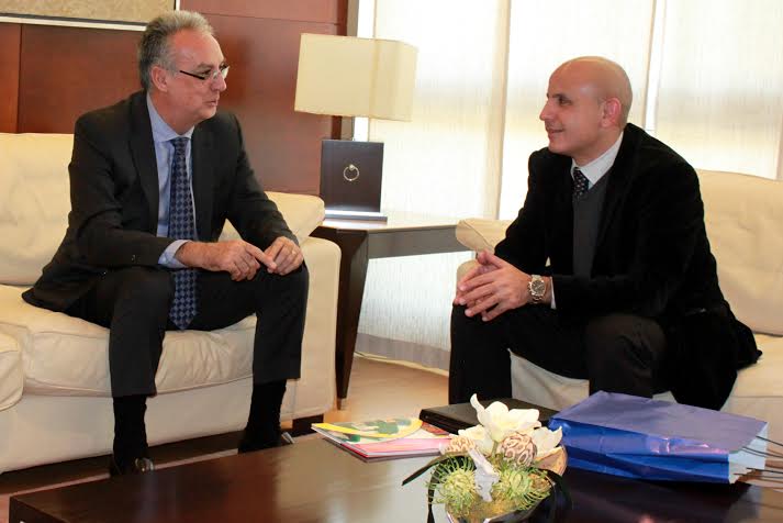 El alcalde de Benidorm, Agustín Navarro, ha recibido esta mañana en su despacho la visita institucional del cónsul de la República de Colombia en la Comunidad Valenciana y Murcia, Felipe Carreño.