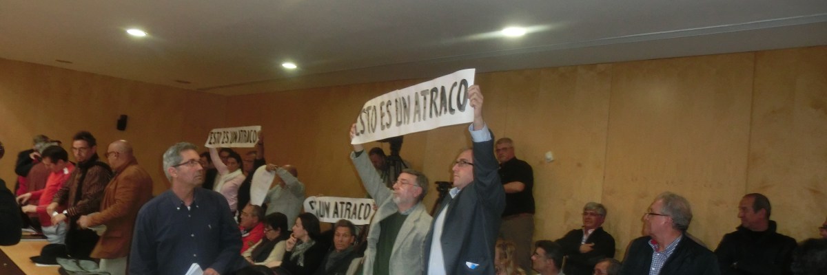 Ver en un pleno mucha gente ya piensa uno que algo se esta tramando, ciendo. Asi fue. Al final del mismo varios d elos asistentes se levantaron enseñando pancartac con la frase «ESTO ES UN ATRACO».