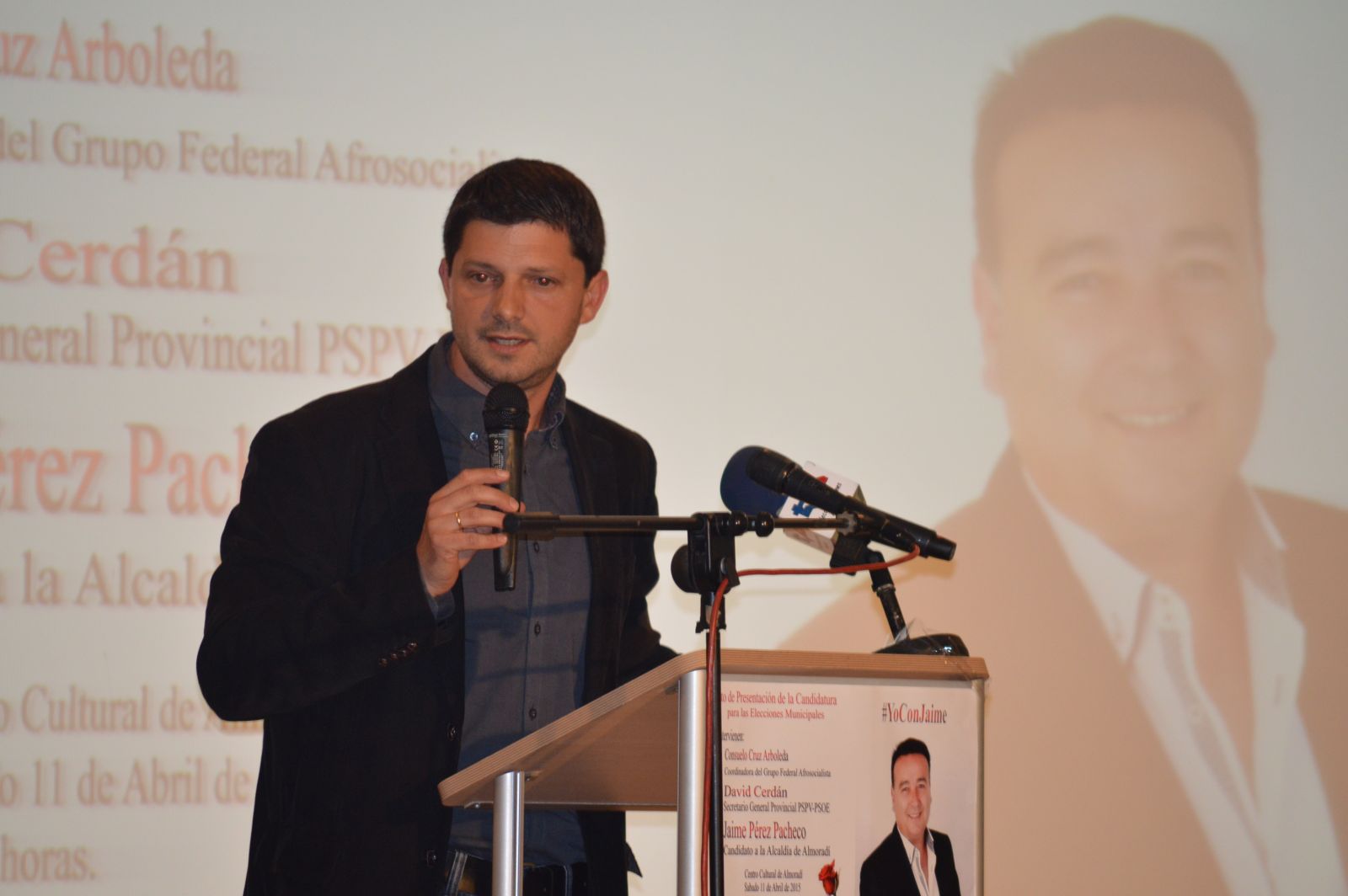 12.04.2015.- David Cerdán, secretario general provincial del PSPV-PSOE en Alicante, y candidato autonómico a las Cortes Valencianas, declaró ayer en Almoradí que “Ciscar no puede venir ahora con recetas que no ha aplicado en todos estos años”.