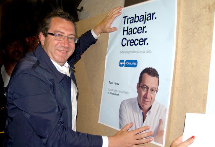 “Limpia y con propuestas e ideas”, esa es la pre-campaña electoral que ha hecho el candidato del Partido Popular a la Alcaldía de Benidorm, Toni Pérez, y de la que no piensa apartarse un ápice a lo largo de la campaña que arrancó esta medianoche. Toni Pérez se ratificó en esos objetivos durante la “pegada de carteles”, que protagonizó junto a los miembros de su candidatura y un buen número de militantes y simpatizantes, en el espacio habilitado por el Ayuntamiento junto a las escaleras que conectan la calle San Pedro con la del Alcalde José Such, cerca del Parque de Elche.