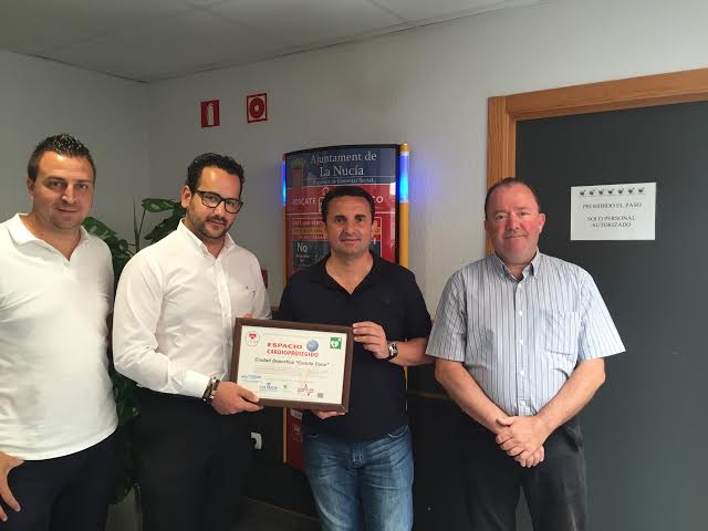 El centro deportivo nuciero cumple con las recomendación ILCOR 2010 (International Liaison Committee on Resuscitation) y queda registrado por segundo año en la plataforma de Espacios Cardioprotegidos de España. En el acto de entrega de la certificación acreditativa como “Espacio Cardioprotegido” participaron Cristian Silvestre por Instituto Mediterráneo de Cardioprotección, Sergio Villalba, concejal de Deportes, Bernabé Cano, alcalde de La Nucía y Manuel Alcalá, concejal de Sanidad.