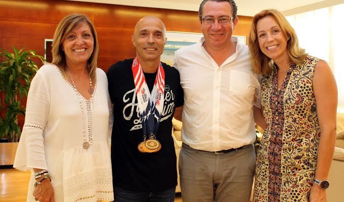 El alcalde de Benidorm, Toni Pérez, acompañado por la edil de Deportes, Ana Pellicer, y la edil de Bienestar Social, Ángela Llorca, ha recibo esta mañana en el despacho de Alcaldía a Domingo Seguí (Chomi), integrante del Cuerpo de Bomberos de Benidorm, para expresarle su felicitación por el éxito conseguido en la última edición de los World Police & Fire Games, los ‘Juegos Olímpicos’ para bomberos y policías, celebrados en la ciudad de Washington del 24 de junio al 2 de julio, y en los que participaron 300 bomberos y policías de diferentes nacionalidades.