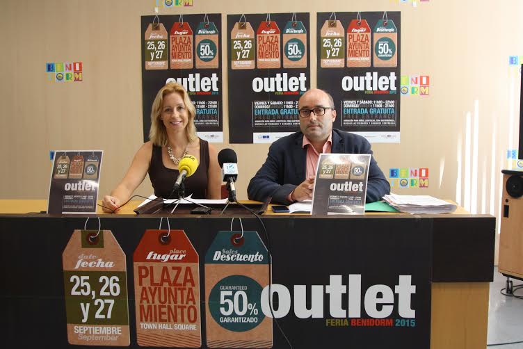Esta mañana la Concejal de Comercio Dña. Ana Pellicer junto con el Presidente de AICO D. Raúl Parra, han presentado la feria Outlet Benidorm que se celebrará los días 25,26 y 27 de este mes de septiembre. Esta feria es un evento organizado por el Ayuntamiento y la Asociación para potenciar el Comercio de Benidorm.