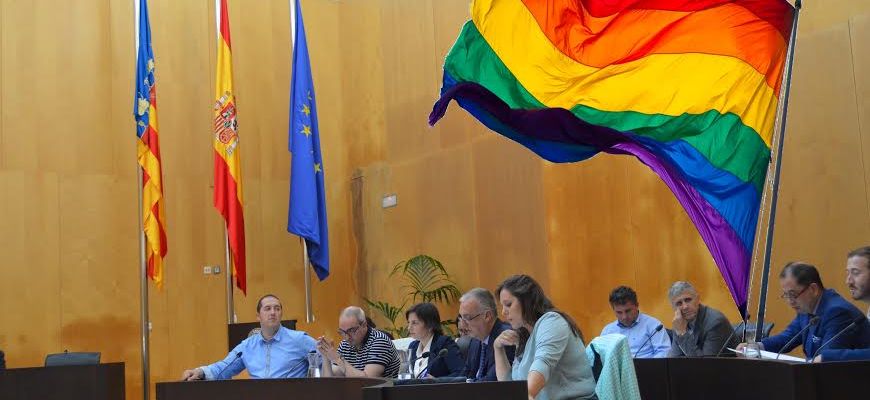 BANDERA GAY EN VEZ VIRGEN SUFRAGIO Después nos colocaron otra bandera en la planta baja del edificio municipal. Ahora, Bigorra, presenta una moción y pide ayuda económica, creo que se aprobaron 15.000€ para ese plan que digo. Mas tarde o mas temprano, yo creo que será mas temprano, pedirán instalar , presuntamente, en el Salón de Pleno su bandera o seyera.