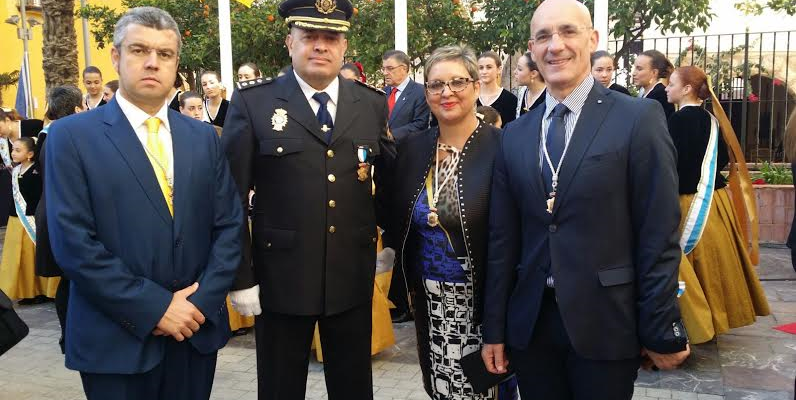 LOS TRES EDILES DE “CIUDADNOS POR BENIDORM” CON EL COMISARIO JEFE EN EL ACTO INSTITUCIONAL DEL DIA DE LA CONSTITUCIÓN