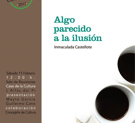 El próximo sábado 11 de febrero se presenta en la casa de cultura de l’Alfàs del Pi Algo parecido a la ilusión, la última obra literaria de la escritora Inmaculada Castellote. El libro forma parte de la Colección El pez volador, que nace en abril de 2013 en el entorno del Taller de Escritura Creativa de Clara Obligado y desde entonces se ha convertido en una cantera de autores de gran calidad.