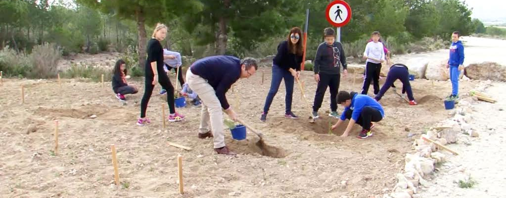 Un centenar de niños, estudiantes de 5 y 6 de Educación Primaria de los centros El Murtal y Vasco Núñez de Balboa, han participado esta mañana en la repoblación del ‘Bosc dels xiquets’, una parcela de la Foia del Ca, perteneciente a la Sociedad Proyectos Temáticos de la Comunitat Valenciana, tal y como se viene haciendo desde el año 2006, con motivo de la celebración de la XVI edición del ‘Día del Árbol’.