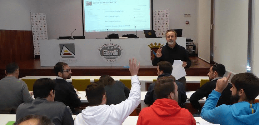 El Curso de Entrenador de Fútbol Nivel 1 tendrá dos fases. La primera fase denominada “Bloque Común y Complementario” arrancó el pasado 18 de febrero y se desarrollará durante varios meses en la Seu Universitària de La Nucía. La segunda parte “Bloque Específico” se impartirá de forma intensiva durante el mes de junio en los “campos de Fútbol Base Vicente del Bosque” de la Ciutat Esportiva Camilo Cano de La Nucía. 20 alumnos de toda la provincia de Alicante comenzaron este curso el pasado viernes 17 de febrero por la tarde en la Seu Universitària de La Nucía.