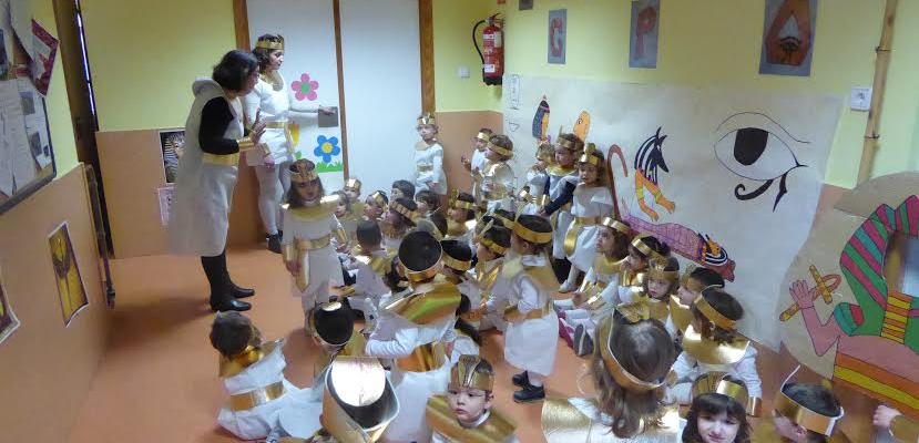 Los pequeños y las profesoras han decorado sus aulas y las paredes del Bressol con unos originales murales con jeroglíficos y “photocall”, todo ello con temática egipcia, además de crear sus propias momias con los muñecos de las aulas. Los pequeños “Faraones” han disfrutado de una mañana de diversión y encanto sumergiéndose en la cultura Egipcia, y algunos niños se han maquillado para dar mayor realismo a sus disfraces.