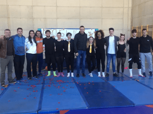 La semana pasada semana se celebraron los exámenes del tema de “Construcciones Humanas” de Educación Física en el gimnasio del Instituto de La Nucía. Cada grupo de 8 alumnos de primer de bachillerato realizó un pequeño espectáculo, que se realiza en los recreos para que el resto de alumnos del centro educativo pueda verlos. Esta actividad cada año sube su nivel y el gimnasio está lleno para ver estos exámenes de “Construcciones Humanas”