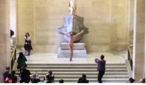 UN ARTISTA CATALÁN SE DESNUDA EN LOUVRE ANTE LA ESTATUA DE NIKÉ