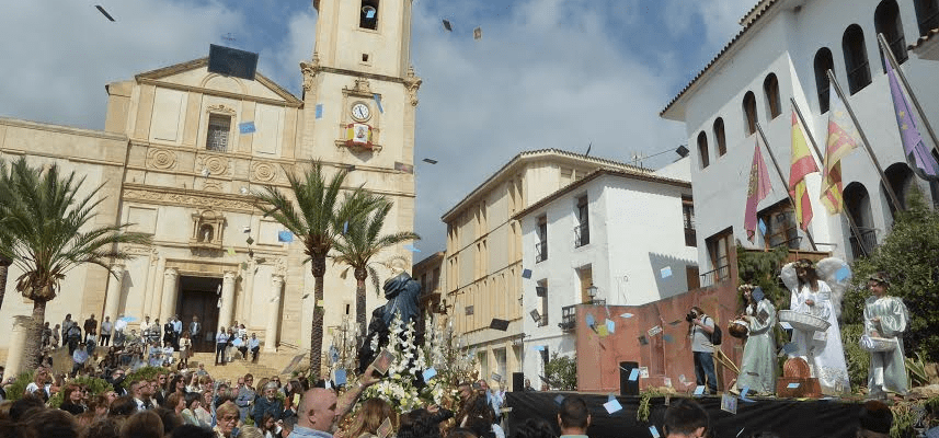 La procesión del “Encuentro” del Domingo de Pascua cuenta con uno de los actos más tradicionales de la Semana Santa nuciera como es “l’Embaixà”. Este año fue recitada por la niña Alejandra Magdaleno Magallanes, que fue acompañada de dos ángeles. Al finalizar el verso se soltaron palomas y se lanzaron aleluyas para celebrar la resurrección de Jesucristo en el “Domingo de Gloria”. Tras la procesión se celebró la “Santa Misa” del Domingo de Gloria, que puso el punto y final a los actos de la Semana Santa de La Nucía 2017.