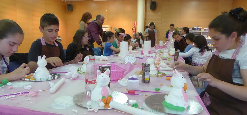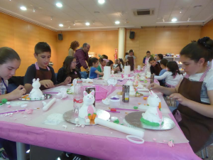 Durante 4 horas los niños se pusieron el delantal de reposteros para crear el tradicional conejo de pascua, en una actividad solidaria con el Banco de Alimentos de La Nucía, al que todos los asistentes donaron, al menos, 1 kg. de alimentos no perecederos.