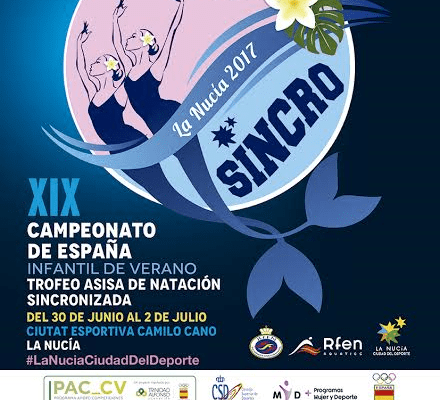 El próximo viernes 30 de junio a las 14 horas arranca el “XIX Campeonato de España Infantil de Verano Trofeo ASISA de Natación Sincronizada” en la Piscina Climatizada Camilo Cano de La Nucía. 347 nadadoras de toda España participarán en este nacional que convertirá a #LaNuciaCiudadDelDeporte en el centro neurálgico de la “sincro española” del 30 de junio al 2 de julio. La entrada para el público será libre y gratuita.