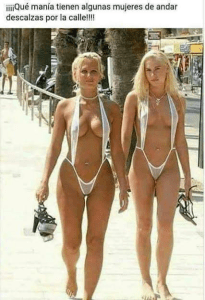 Las que se ponen pantalones lo hace muy ceñidas para destacar todos los encantos de su figura, pechos, caderas, pantorrillas, incluso el pubis.