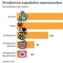 4. Guerra de aranceles con Estados Unidos: «Hay palés de aceite de oliva que no sabemos si saldrán a EE.UU.». Si hay un sector que mira con preocupación la intención de EE.UU. de poner aranceles del 25% a productos agroalimentarios españoles es el del aceite de oliva. «Tenemos listos cuatro palés de aceite envasado y no sabemos si van a salir o no», relata a ABC Joaquín Morillo, director de producción y marketing del grupo Oleícola Jaén. El impacto al sector, que exporta unas 60.000 toneladas a EE.UU., sería de unos 150 millones de euros. Una factura que dañaría gravemente y supone un freno a una industria que «ya está bastante tocada». Y es que los productores de aceite de oliva ya viven una situación peliaguda. Según explica el directivo de Oleícola Jaén, los costes de producción superan los ingresos. Este año el sector ha tenido una producción récord, lo que ha provocado que los precios hayan bajado mucho. Este año se espera que la producción sea también positiva, hasta acumular unas 2.000 millones de toneladas. «Si no cubres los costes puedes sobrevivir a duras penas, pero si sale una cosecha como la que se presagia habrá una saturación del mercado».
