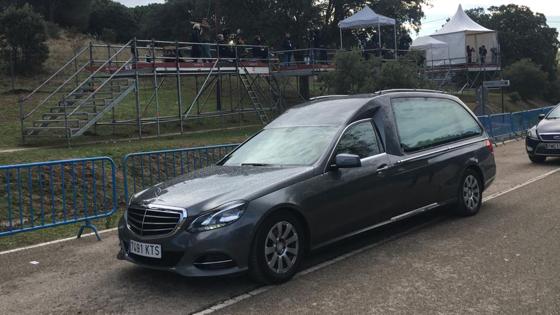 13.16La comitiva está sacando el ataúd del coche fúnebre para ser trasladado al helicóptero.