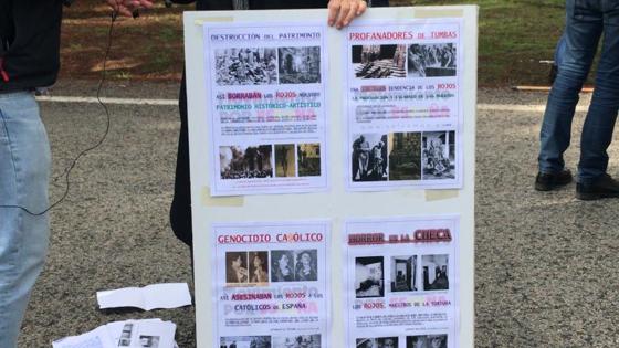 11.08llega más gente con pancartas al Valle de los Caídos. En una de ellas se puede leer «Franco vive» y en otra «miserables bellacos». Informa Angie Calero.