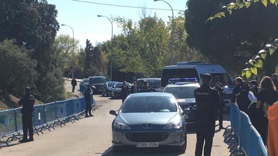 11.10Ahí está, igualmente custodiada, la puerta del cementerio de Mingorrubio, en el distrito madrileño de El Pardo. Hasta este punto sólo pueden acceder ahora mismo los medios de comunicación y por ahí entrará el cortejo fúnebre de Franco. Informa Enrique Delgado.