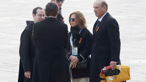10.47Aunque todos han accedido a la Basílica, donde ya les esperaban los representantes del Gobierno –la ministra de Justicia, Dolores Delgado; el secretario general de Presidencia, Félix Bolaños; y el subsecretario del Ministerio de Presidencia, Antonio Hidalgo– sólo serán dos los familiares que vean directamente el momento de la retirada de la lápida, en principio Cristóbal y Merry Cristóbal Bordiú.