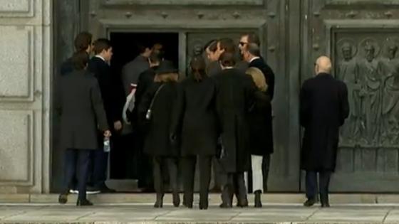 12.53Salen los familiares de Francisco Franco con el ataúd a los hombros.