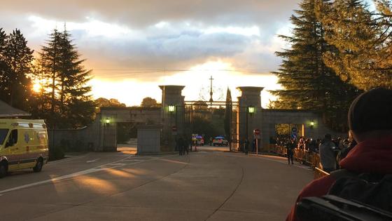 14.49Esto es todo lo que se puede ver desde la posición, frente al cementerio, en la que está ubicada la prensa. En cuanto saquen el féretro de Franco del coche fúnebre, el cortejo entrará en la capilla donde se celebrará una una misa antes de bajar el ataúd a la cripta. Informa Enrique Delgado.
