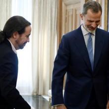 3. Podemos ampara una «consulta popular» contra la Monarquía mientras negocia el Gobierno con Sánchez. La plataforma «Adiós Monarquía, hola democracia» celebró un evento el pasado jueves en contra del Rey en el Auditorio Marcelino Camacho, en Madrid, al que Unidas Podemos se sumó junto a otros colectivos de la izquierda republicana y de carácter universitario como «Referéndum URJC» y «Alcorcón decide». La convocatoria solo reunió a 150 personas. Sin embargo, insisten y promueven ahora una «consulta popular» el 9 de mayo apoyados en la plataforma «Consulta Popular Estatal Monarquía o República». Dicha plataforma se creó el pasado 19 de octubre gracias a «diferentes colectivos y espacios unitarios», explican en su página web, con el objetivo de «organizar la convocatoria de una consulta democrática no vinculante para que el conjunto de la ciudadanía se pueda pronunciar y decidir sobre la forma de Estado».