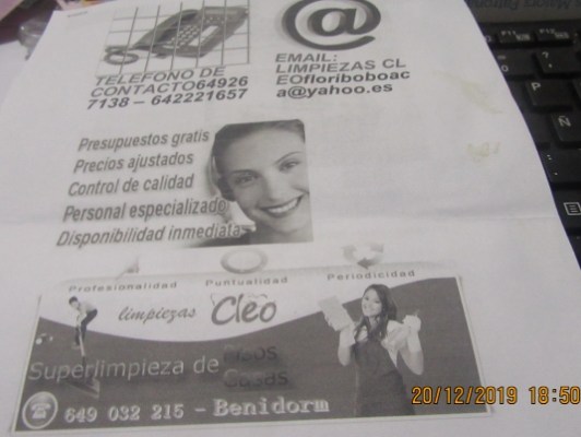 Empezó siendo la encargada de una determinada empresa de esas que se dedican a limpiar apartamentos, viviendas etc.. En muy pocos meses monta su propia empresa y me costa que funcionaba muy bien y tenia una nutrida clientela en la Cala de La Vila. Aunque nunca lo supe seguro, pero ganaba mas que yo ya que tenia a varias chicas para esos trabajos, solo una dada de alta en la SS. y, según ella, tenia mas de 30 apartamentos diarios para limpiar.