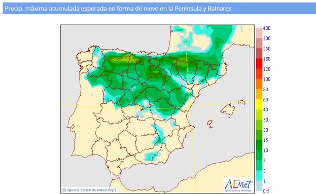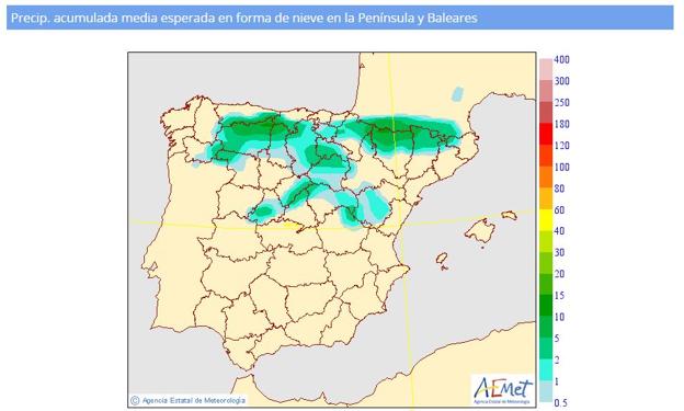 Aquí puedes ver la previsión de Aemet de nieve media y máxima esperada para el sábado y el domingo.