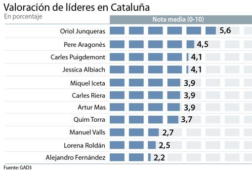 El sondeo, por otra parte, confirma que el desplome político de Ciudadanos en el conjunto de España se traslada también a Cataluña, donde pasarían de ser la primera fuerza del Parlament (con 36 diputados y un porcentaje de voto del 25,4%) a ser la cuarta, con 12 actas y el 8,9% de los sufragios. El cataclismo electoral de Cs es proporcional al avance del PP, que pasaría de 4 a 9 diputados (del 4 al 7,2% de voto).