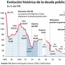 4. La deuda pública se disparará a su mayor nivel en más de un siglo por la epidemia. La deuda pública será el gran recordatorio del impacto de la crisis del coronavirus sobre la economía española. «Para sostener las rentas que vamos a tener que garantizar en este periodo es evidente que nos vamos a tener que endeudar. Vamos a detraer recursos económicos a los jóvenes, a los niños y a los que están por nacer», señaló el presidente del Gobierno, Pedro Sánchez. Porque lo cierto es que, incluso con una recuperación rápida, llevará años bajar el endeudamiento al nivel que había antes de que estallara la epidemia y los organismos y casas de análisis ya asumen que superará el 100% del PIB e incluso podría remontar hacia cotas próximas al 120%.Ello supondrá su mayor nivel en términos relativos desde principios del siglo XX.