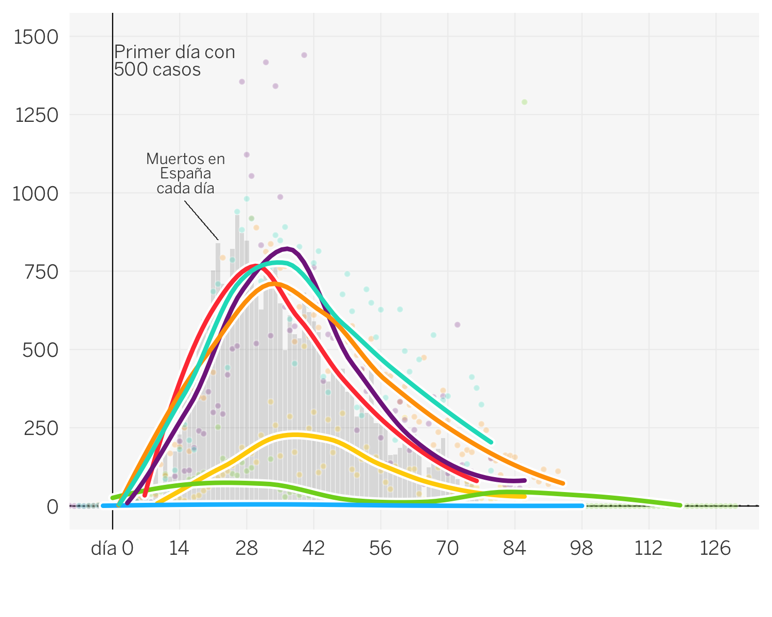 👉 ¿Por qué cifras de fallecidos? Esas cifras tienen el inconveniente de que llegan con retraso, dado que las muertes tardan en producirse dos o tres semanas desde el contagio. Son una métrica que, en cierto sentido, nos hablan del pasado de la epidemia. Pero su ventaja es que, aunque no sean datos perfectos, son un registro más preciso que el de casos confirmados.